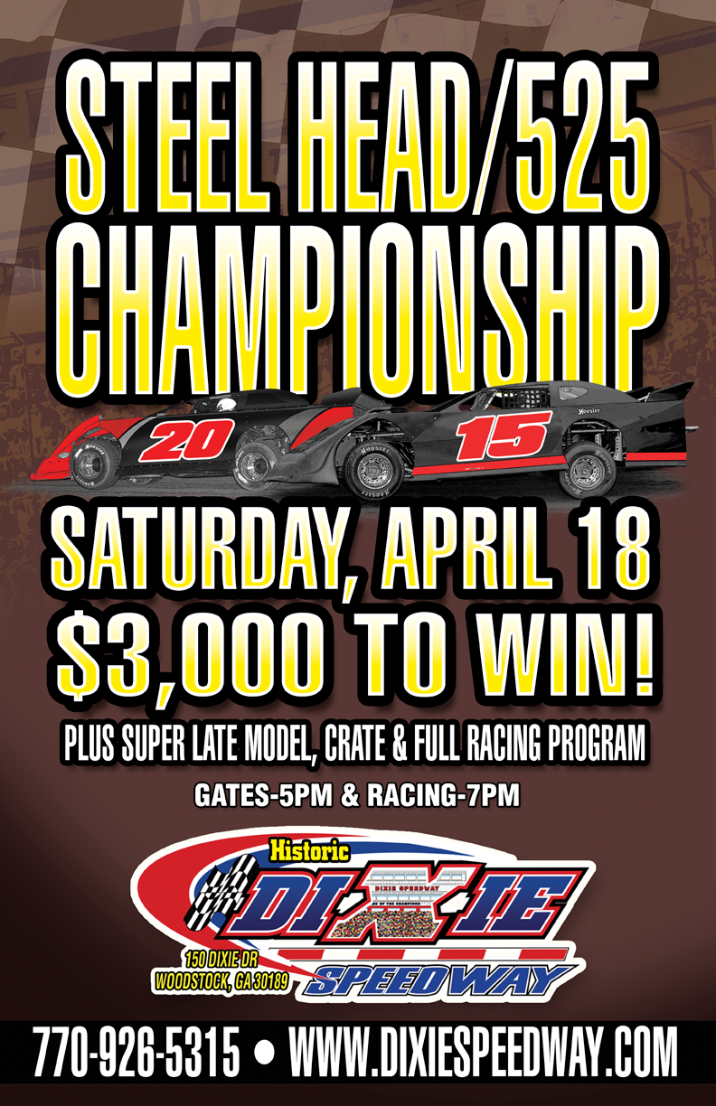 ADDED EVENT- Saturday night April 18- $3000 to win Steel Head/525. Super Late Model plus A Full Race Program
