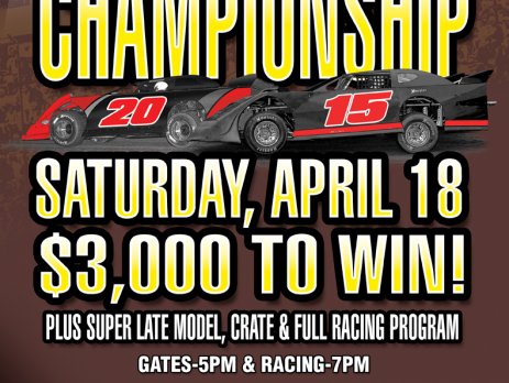 Due to 100 % Saturday forecast Rome Speedway’s $3000 to win Rome Rumble has been moved to this Sunday night April 26th! Pit Gate 4pm. Grandstand-5pm, Racing 7pm Super Late Model- $50 Entry Fee Format- 40 Laps, Qualify, start where you qualify-no invert Tire Rule- Any- Hoosier 21, 55, 1350, 1600 Divisions Racing- Econo Bomber Super Bomber Pony Crate Steel Head/525- will qualify Super Late Model Street Cruiser Pits- 4pm- $30, Ages 11 & under $11, Tailgate- 4pm- $22, Ages 11 & under $11, Grandstand- 5pm- $17, ($2 discount with coke bottle cap) Ages 9 to [...]