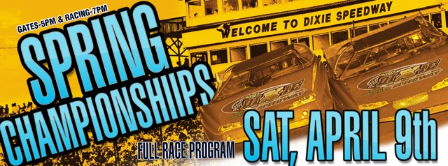 Just announced-  Due to cooler temps the Dixie Short Track Championships will start early start this Saturday night April 9th. The Pit gate will open at 4pm, Hot laps at 6pm with