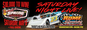 ROME SPEEDWAY- SATURDAY NIGHT May 6- $10,000. to win Schaeffer’s Oil Spring Nationals + Full Race Program-All Divisions Racing