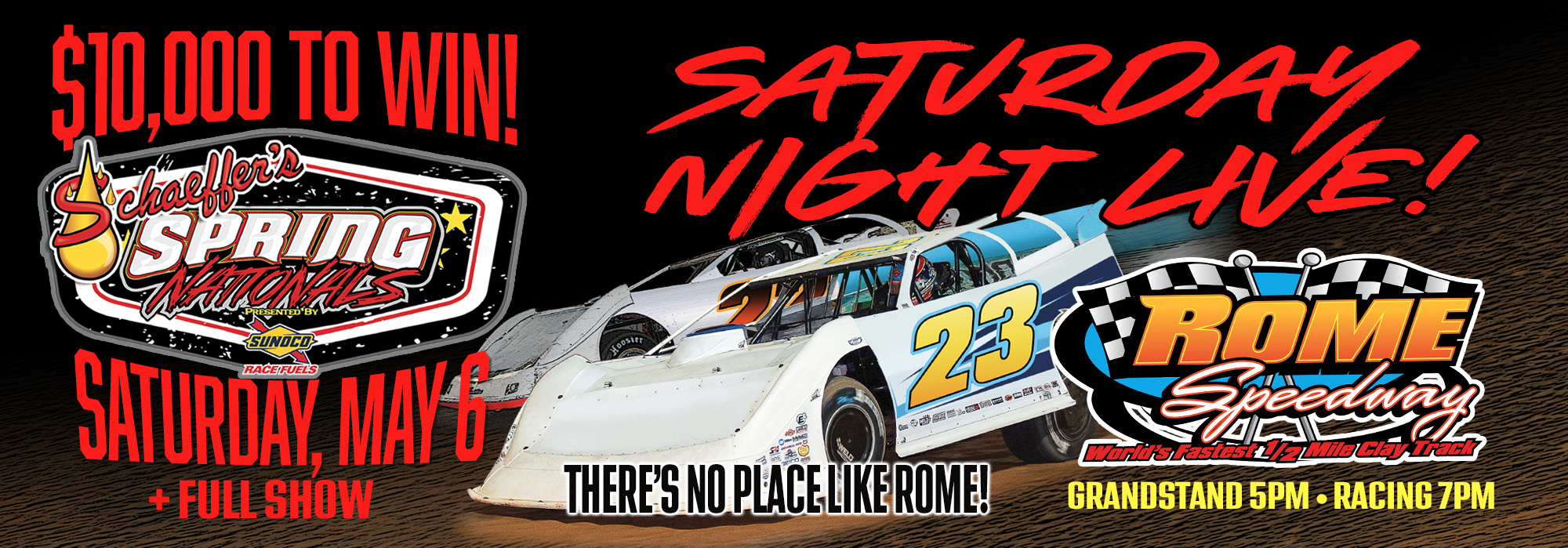 The Schaeffer’s Oil Spring Nationals will be at Rome Speedway SATURDAY NIGHT May 6th! See 30 of the region’s best drivers plus a Full Racing Program!