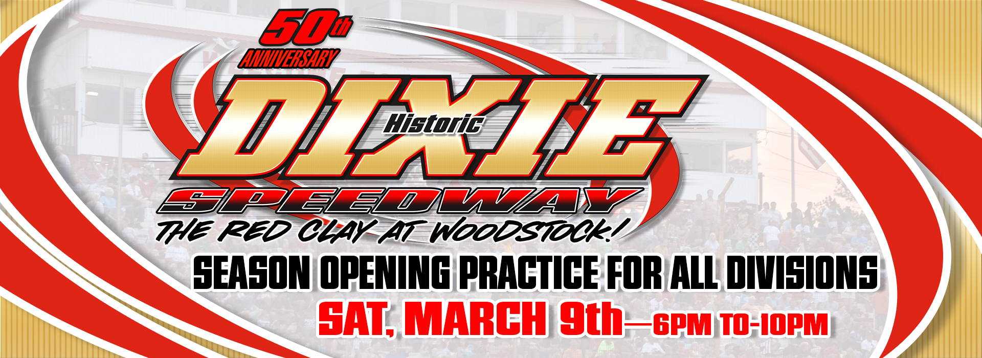 It’s the 50 year anniversary season for Historic Dixie Speedway! The Special Event Spring schedule kicks off with the season opening practice for all divisions on Saturday night March 9th. Practice will be from 5 to 10pm. It’s free admission in the grandstand so it’s a great time to drop in and check it out.