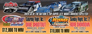 The Lucas Oil National Touring Series roars into town for the Oct. 1 $12,000 to win Dixie Shootout & Oct. 2 $10,000 to win Rome Showdown